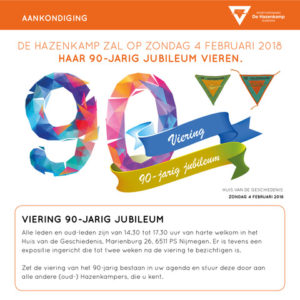 Alle leden en oud leden zijn 4 februari 2018 van 14.30 tot 17.30 uur van harte welkom in het Huis van de Geschiedenis, Marienburg 26, 6511 PS te Nijmegen. Er is tevens een expositie ingericht die tot 2 weken na de viering te bezichtigen is.