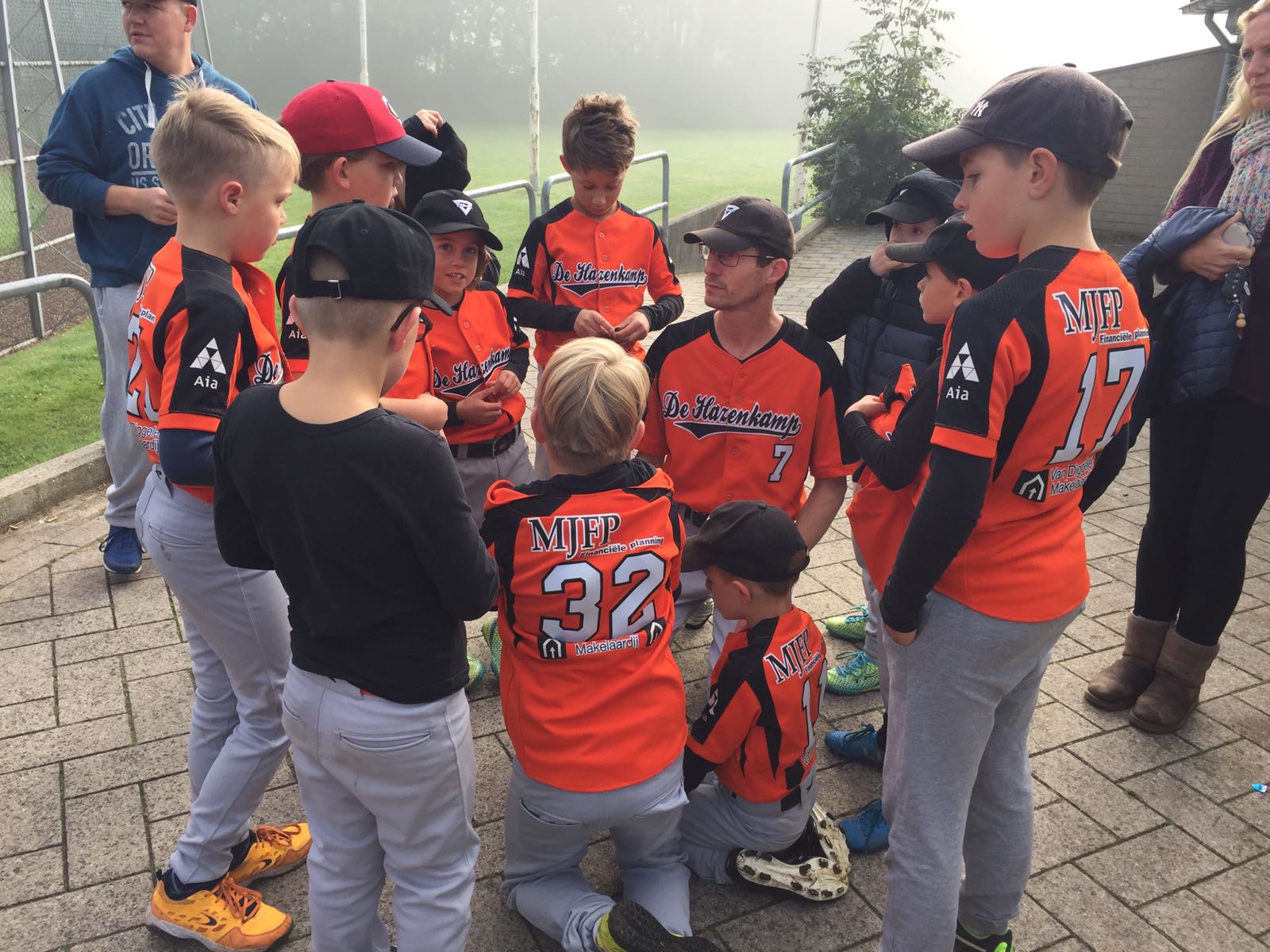 In de 3e inning neemt Eleonorah de plaats in van catcher wat ze erg goed doet. Haar vader staat achter haar en poetst de ballen voordat ze terug gaan naar Folke! Xavier C. slaat deze inning een mooie bal voor de tegenstander en Eleonorah kan niet voorkomen dat haar broer de thuisplaat haalt. Tycho is erg alert en kijkt dreigend met de bal naar de tegenstander alsof hij wil zeggen “pas op, als jullie gaan lopen dan gooi ik de bal”! Ook Cas kijkt goed en gooit de bal naar Eleonorah. Helaas is de tegenstander net binnen voordat de bal er is. De Hazenkamp speelt erg goed samen in het veld en als Quinn dan ook nog de laatste bal van de tegenstander vangt is de vreugde groot. Het publiek wordt gek! Wat een spannende wedstrijd.
